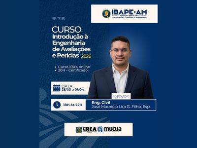 O Curso Introdução à Engenharia de Avaliações e Perícias, promovido pelo IBAPE-AM, é a oportunidade ideal para dar o primeiro passo ou fortalecer sua base técnica!
